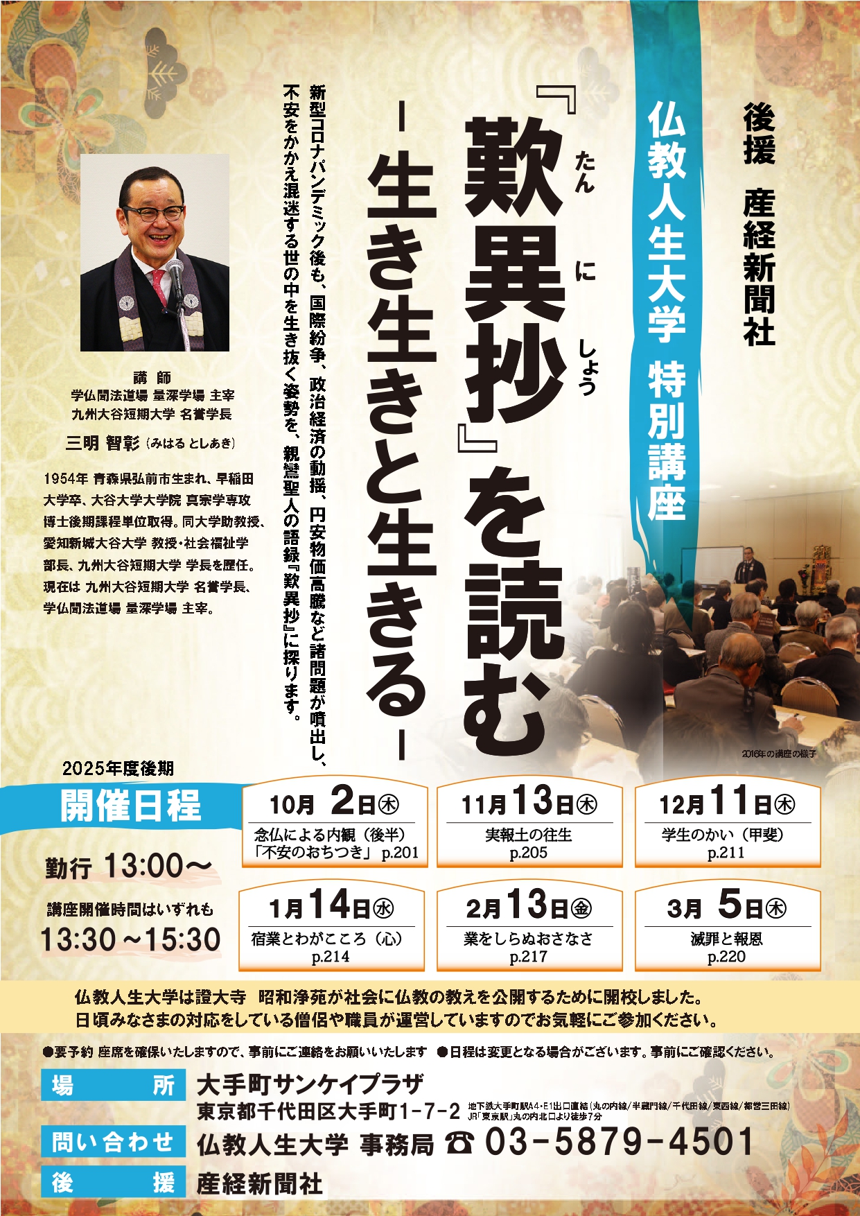 悲惨な戦争、自然災害が打ち続き、武力による威嚇が横行する世に、人として生き抜く力の源泉を、親鸞の語録『歎異抄』にたずねます。